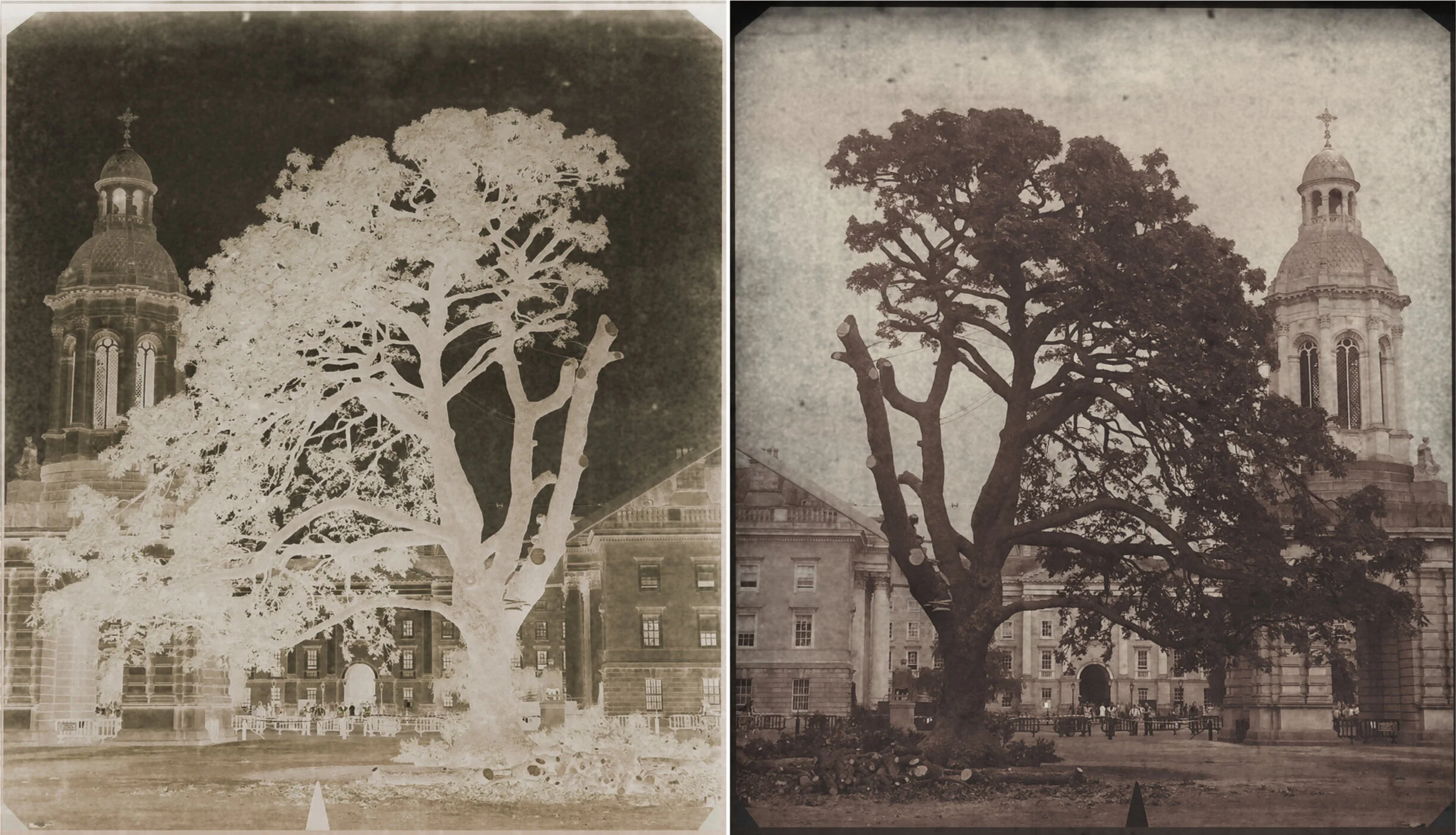 This commission tells the story of two recently felled Oregon Maple trees that hold memories of significant events and histories at the heart of Trinity College Dublin. The accompanying project also suggests a journey through the grounds of Trinity – like a section through its anatomy.